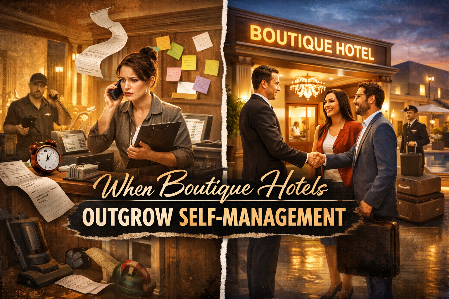 Discover when boutique hotels outgrow self-management and why professional boutique hotel management services can help independent owners optimize operations, revenue, and guest experience while maintaining the unique charm that sets their properties apart.