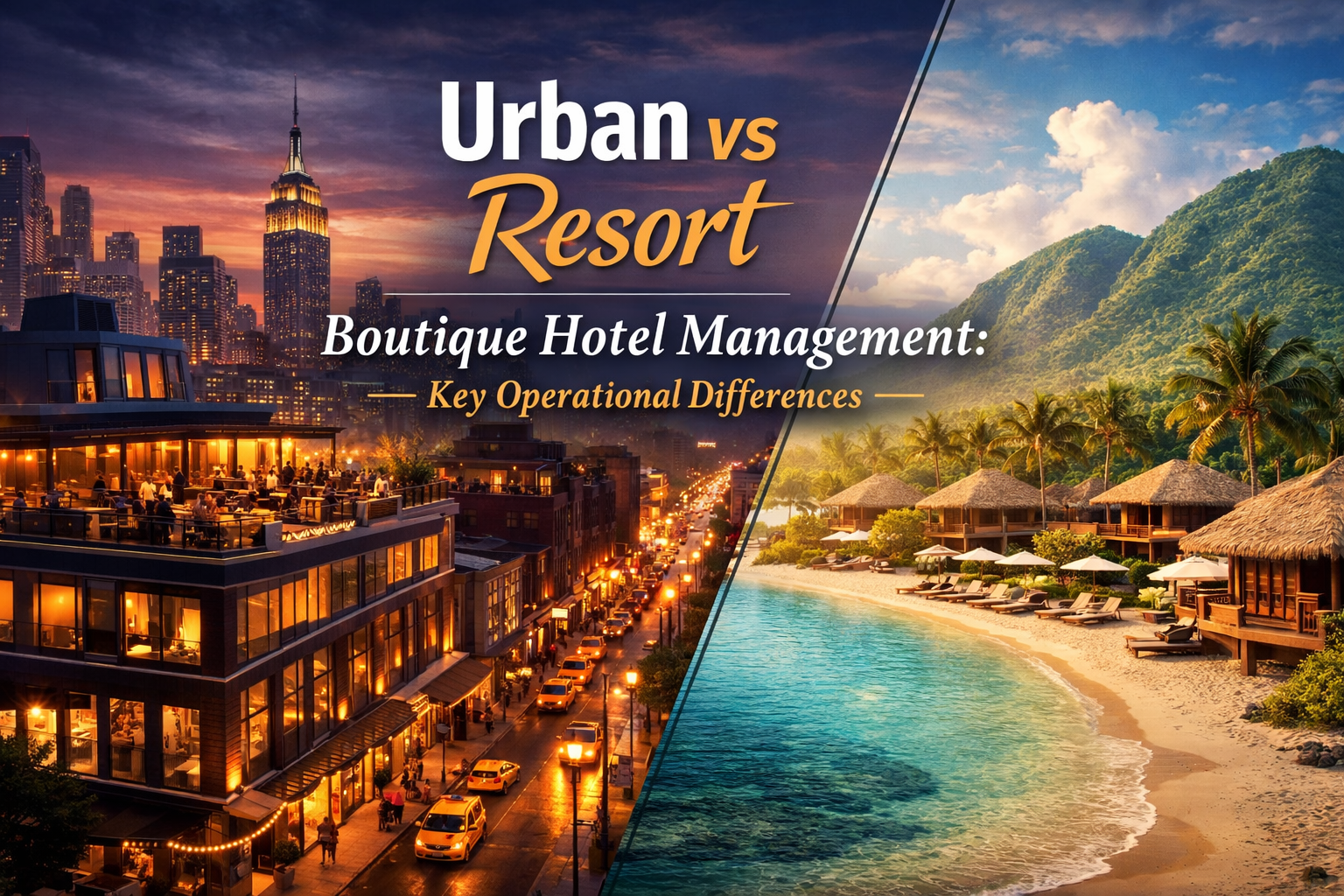 Discover the key operational differences between urban and resort boutique hotels. Learn how location, guest expectations, staffing, and revenue strategies shape boutique hotel management for city and resort properties.